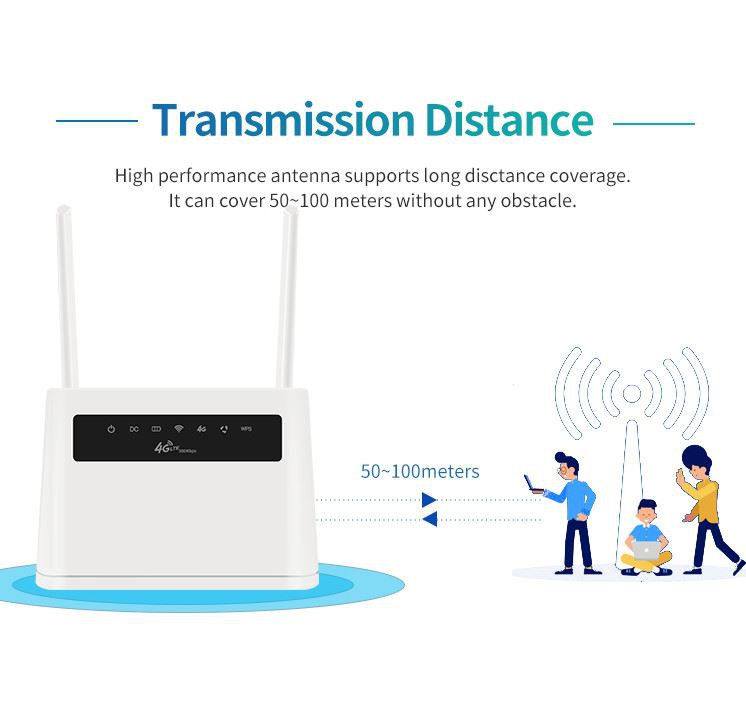 Þetta er CAT 4 4G WiFi bein sendingarhraði allt að 300Mbps, 4G hraði allt að 150Mbps, TDD-LTE: 150Mbps DL / 50Mbps UL TD-SCDMA: 2,8Mbps DL / 2,2Mbps UL Flugstöðin getur stutt þrjár samskiptastillingar: TDD FDD, WCDMA. Það styður netaðgang/PPPoE vinnuham, notar 4G SIM-kort, getur tengst mótaldsvinnu þar sem Gateway-stilling, búin 4 LAN tengi, getur tengst öðrum tækjum samtímis. Það er auðvelt að tengja það og auðvelt að hafa það í höndunum. Deilir viðskiptavinum til 32 WiFi notenda, settu bara SIM-kortið í, þá getur þú notið WiFi með þessum færanlega 4G LTE bein.