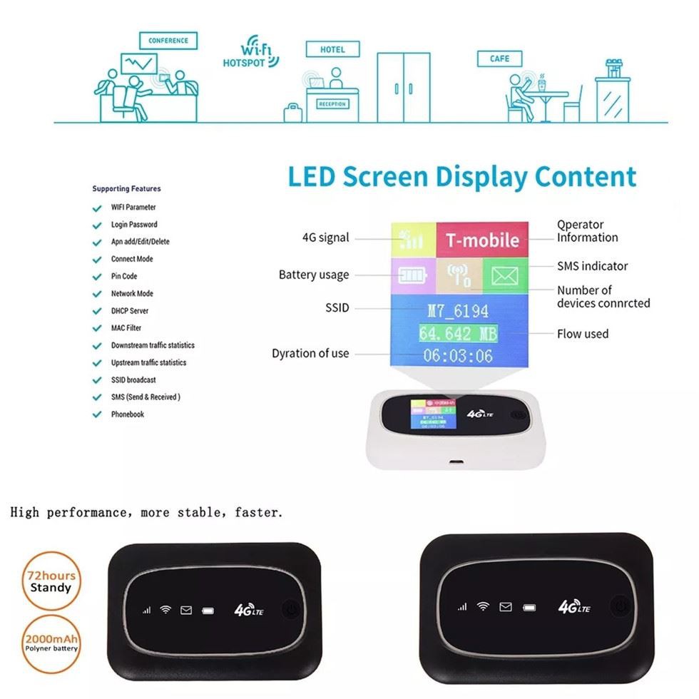 The 4G WiFi router is suitable for travel with family and friends indoor or outdoor.